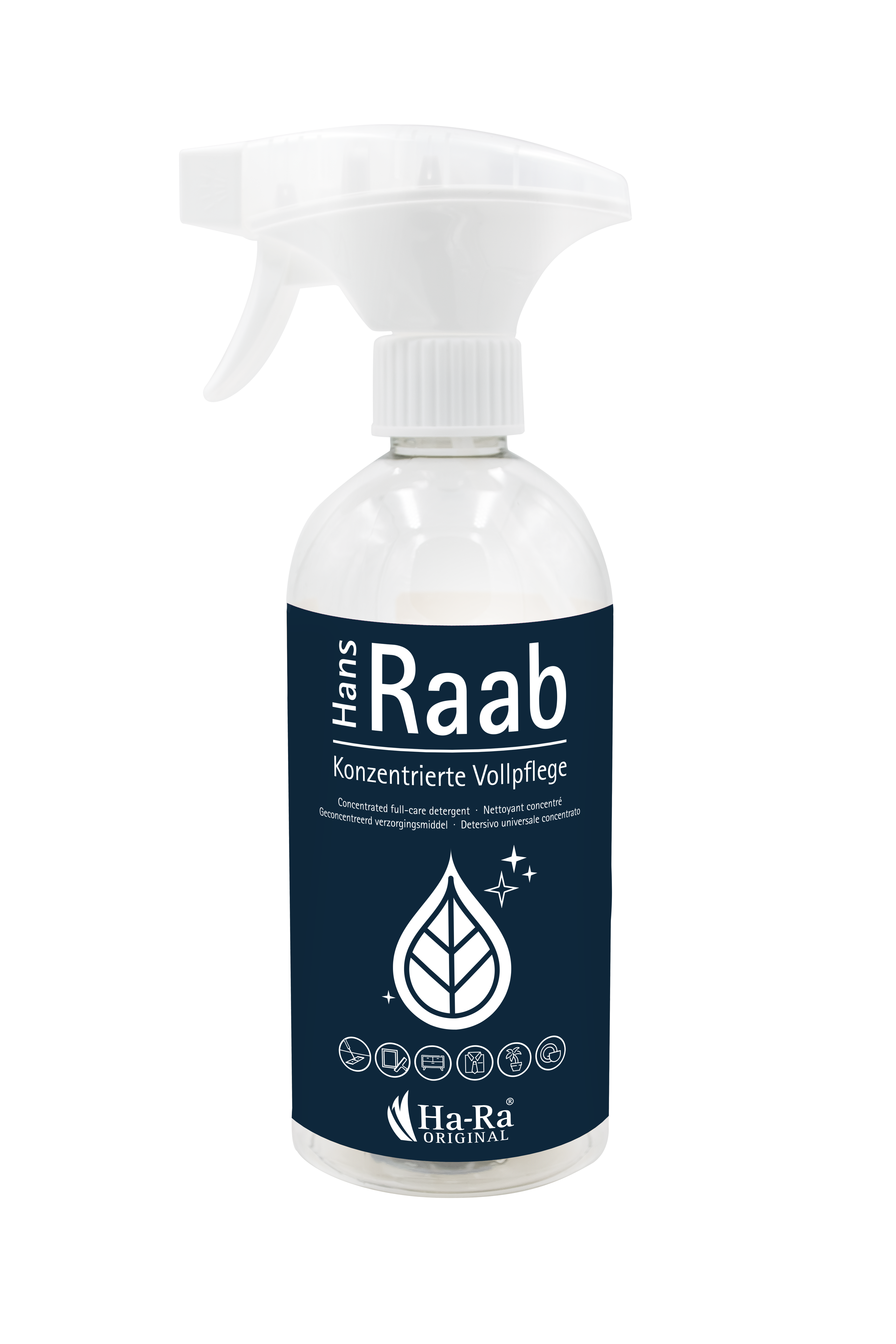 Notre nettoyant concentré Hans Raab est notre superstar, car il renforce les fibres lors du nettoyage et entretient en même temps les surfaces nettoyées.